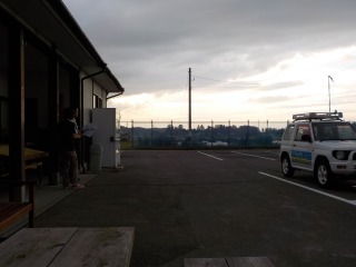 ちょっと暗くて何が写っているかわからないカモ知れませんが、昨日の夕方にFMしばたの吉田さんが来園して夕方の風景中継していきました。