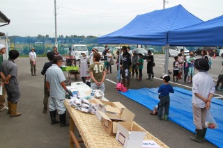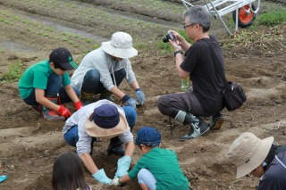 149月 2015さつまいも収穫体験 Posted by: yonekurafureai Categories: 最新情報 No comments 9月13日 さつまいも収穫体験が行われました。 参加者14組54名 ちょっと心配な空の下、さつまいも掘りのスタートです 一組あたり、11株を掘りますがペースはそれぞれ。 子供達は『やさーしく掘って』の注意を忠実に守りつつ、掘ってくれました。 雨が近いので少し蒸し蒸しする中、汗をかいて掘ってくれた方もいらっしゃいました。 天候が不順で収穫量は今一でしたが、皆さん笑顔で体験を終了出来ました。 参加いただいてありがとうございました。