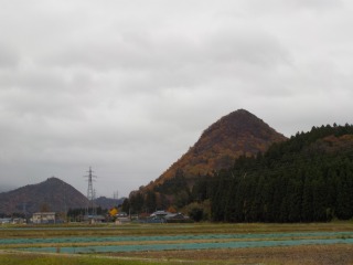 臼が森の山が茶色くなって木の一本一本が茶色のカリフラワーみたいに見えます。