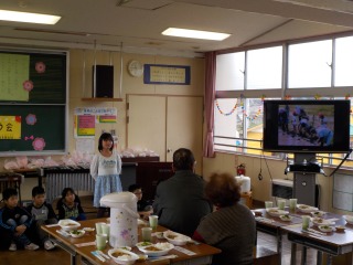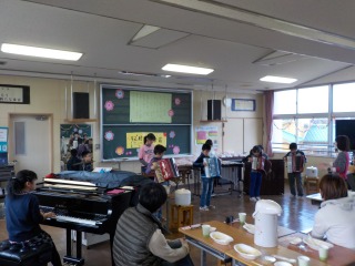 米作りの感想発表と、『花は咲く』の歌と音楽の演奏。綺麗な音色に心がほっこりしました。