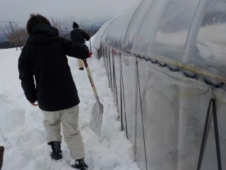 今日はハウスに積もった雪を降ろしてあげました。
