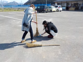 親子と言うより姉妹の様。除雪車が運んで来た石やゴミの量は、小雪だったので今年は少なめ。