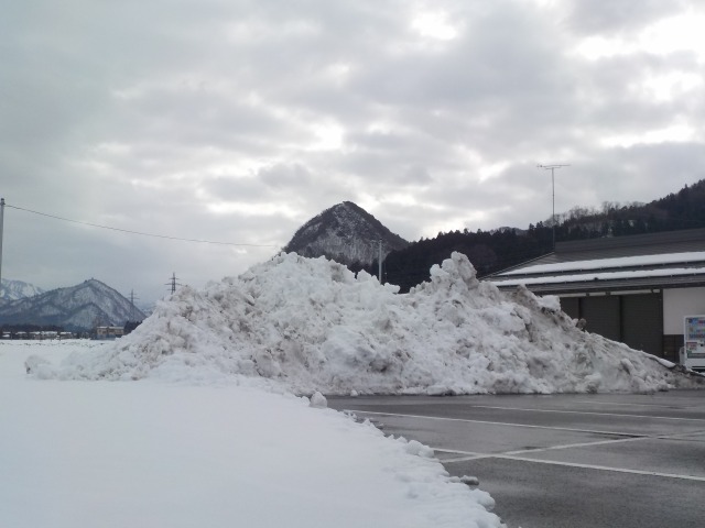 遠近法で積まれた雪が管理棟と同じに見えるっ