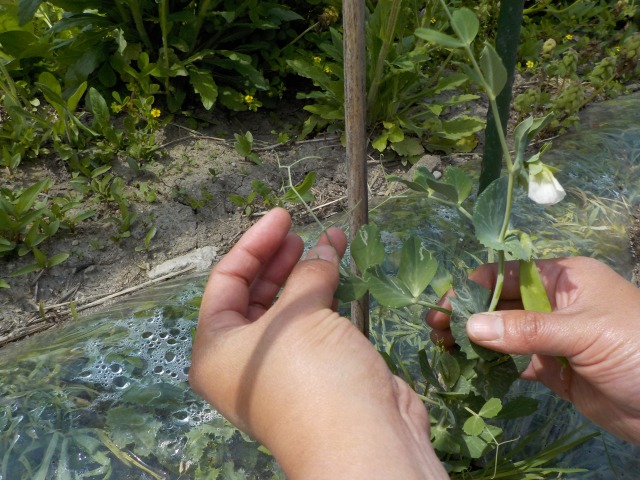 115月 初なり Posted by: yonekurafureai Categories: ブログ No comments 花が咲いていたと思っていたら、きぬさやとスナップエンドウが実を付けていました。 ←きぬさや ←スナップエンドウ ちょっと実が入り過ぎたのもありましたが、実がなると嬉しいものです。 放っておいたらツルがからんじゃって、引き離すのに大変でした。 雑草にも絡んじゃって、すぐさま誘引したのは言うまでもありません・・・