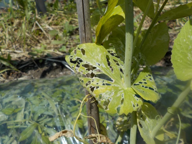 スナップエンドウの葉なんでムシャムシャ食べてくれて、スッケスケ状態…